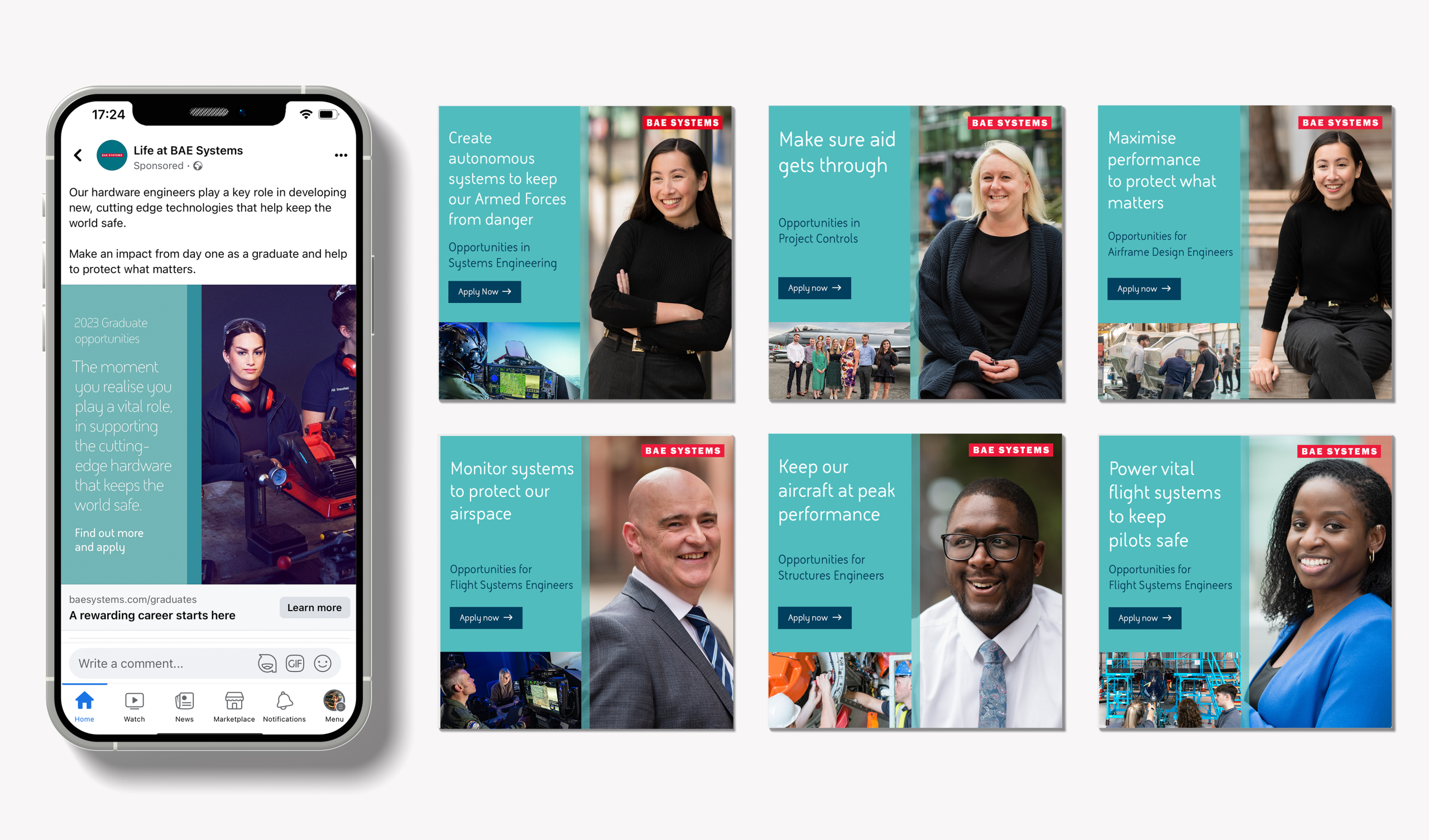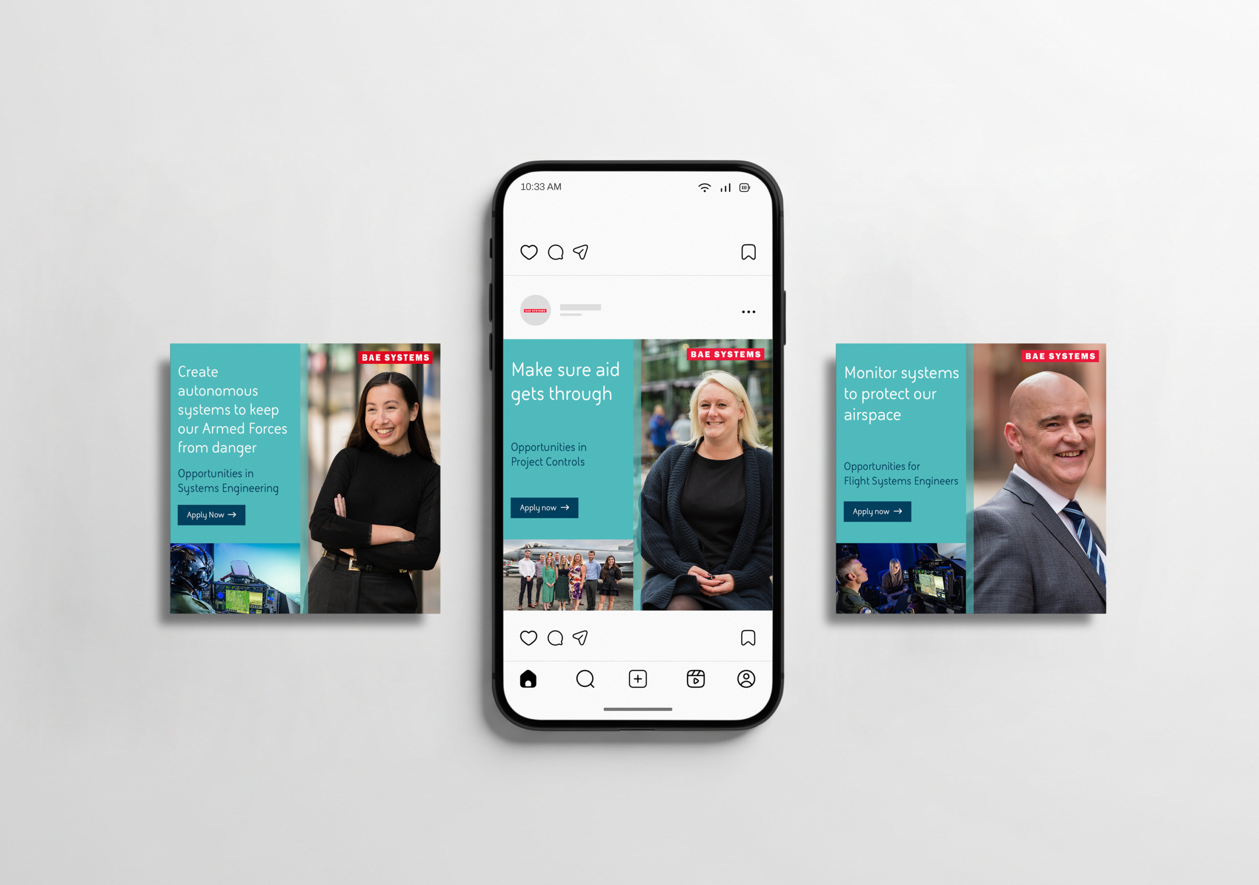 Partnering with BAE Systems, Hot Creative London delivered a recruitment campaign, creating a suite of engaging, on-brand design assets to support employer branding and talent attraction. The work focused on delivering recruitment campaign assets that clearly communicated career opportunities, while maintaining consistency with BAE Systems’ established brand identity.